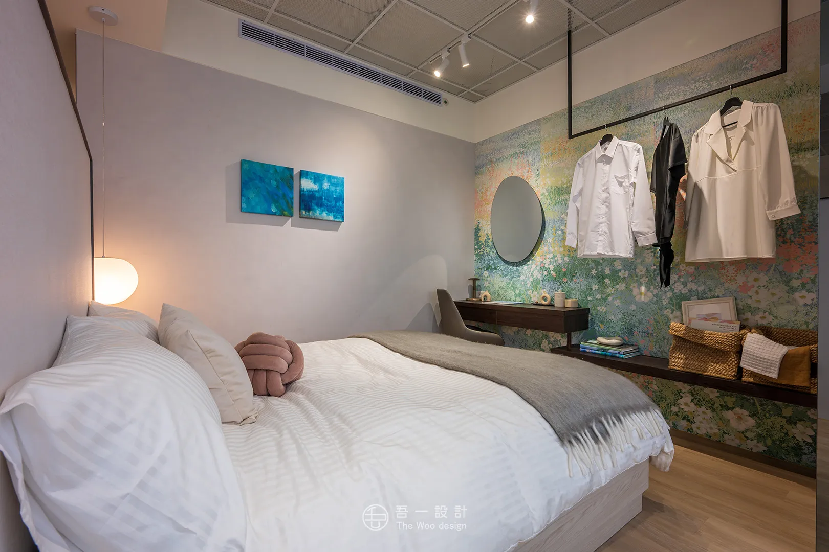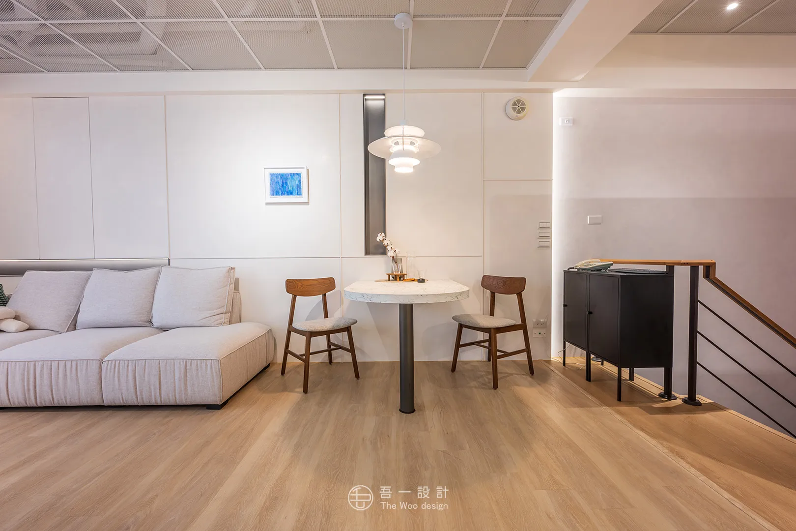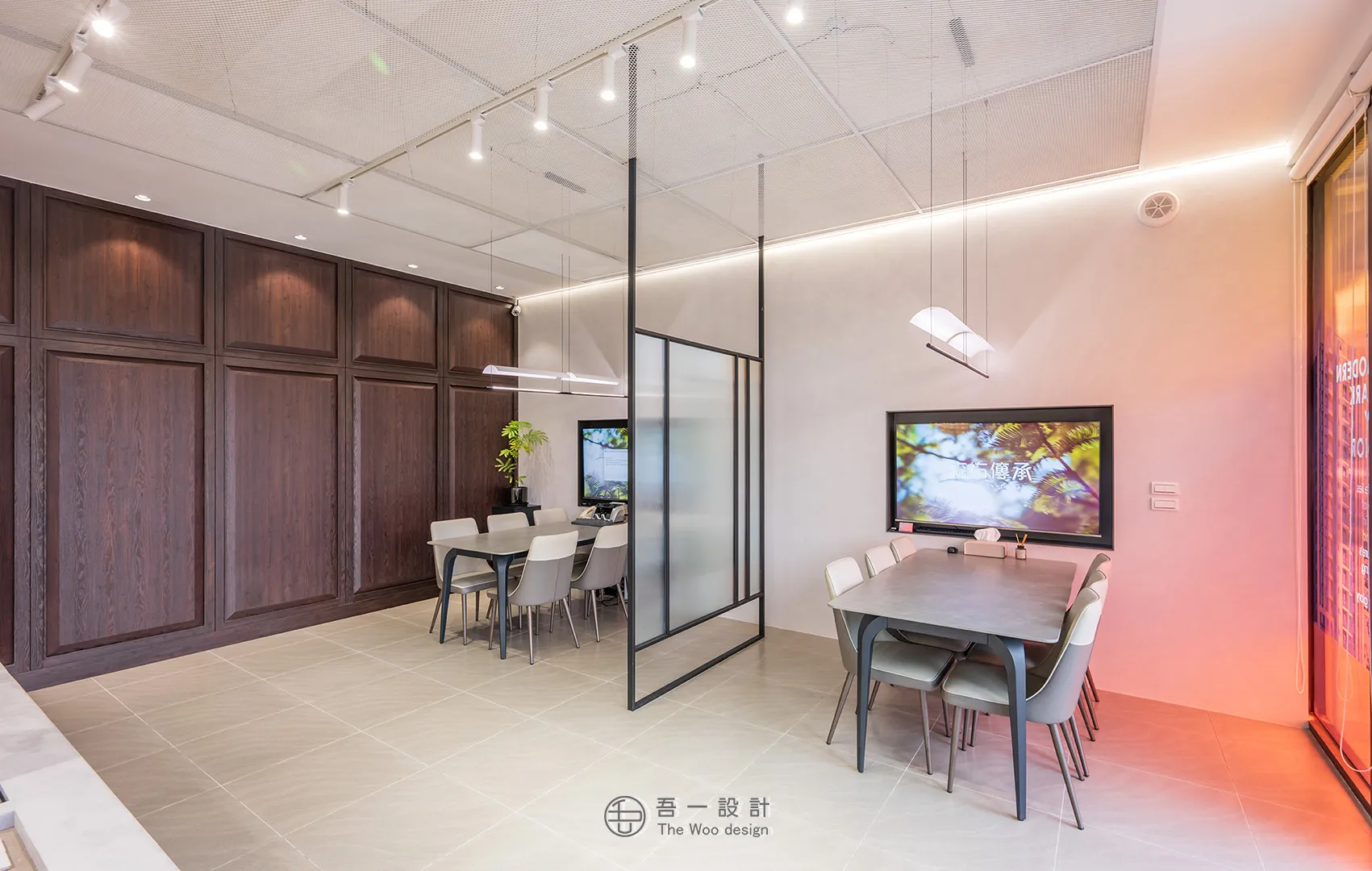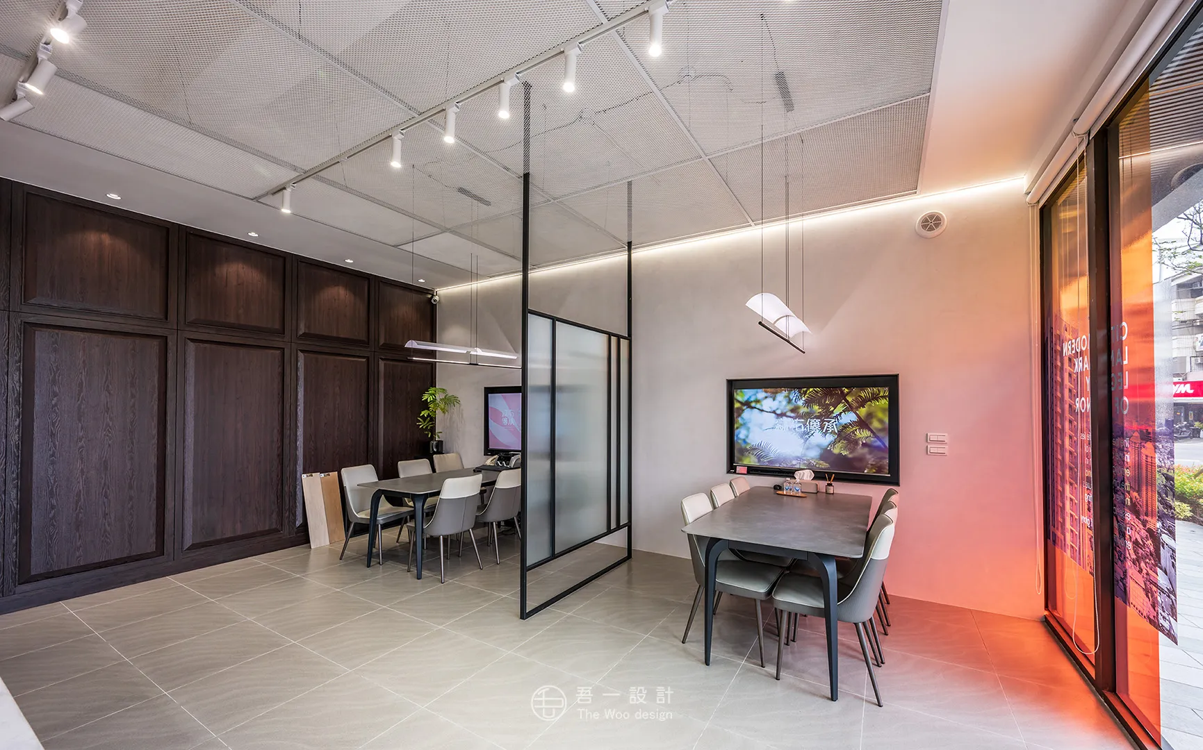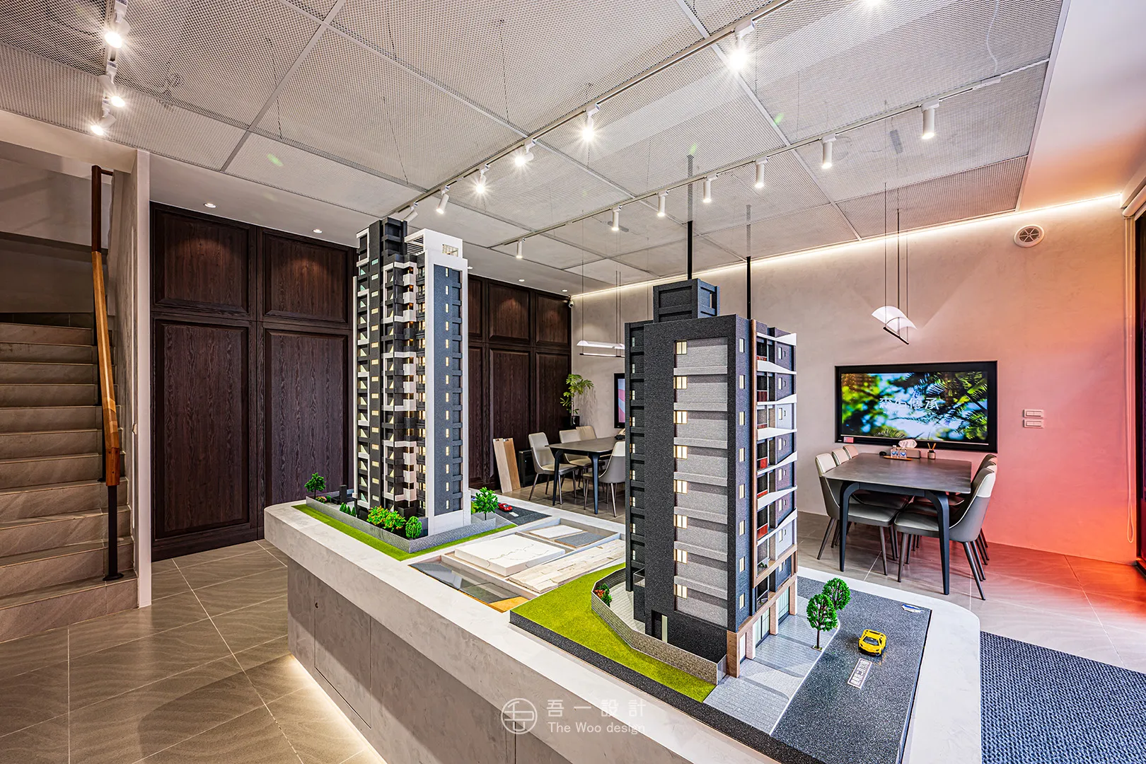 本案以中世紀現代風為骨架,揉合俐落線條與大膽色彩,打造出一座兼具品味與個性的雙層接待空間。 一樓以建築模型與洽談空間為主,簡約中見張力; 二樓則延伸至日常情境的臥室、客廳與衛浴展示,透過光線、材質與比例的交織,呈現理想生活的真實樣貌。